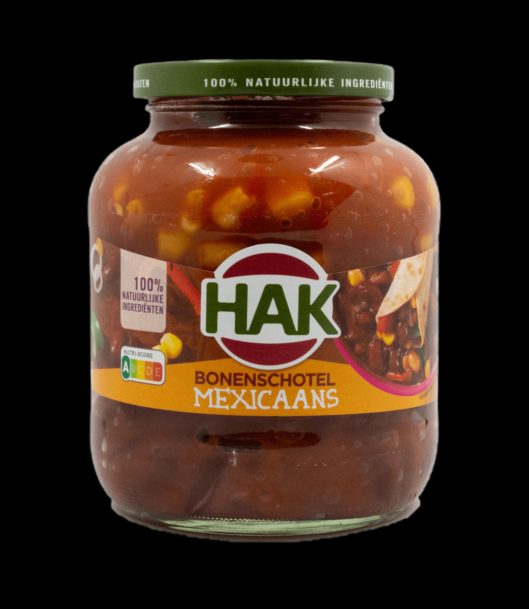 Kidney beans with onion, red and green peppers, and corn in a tomato sauce.