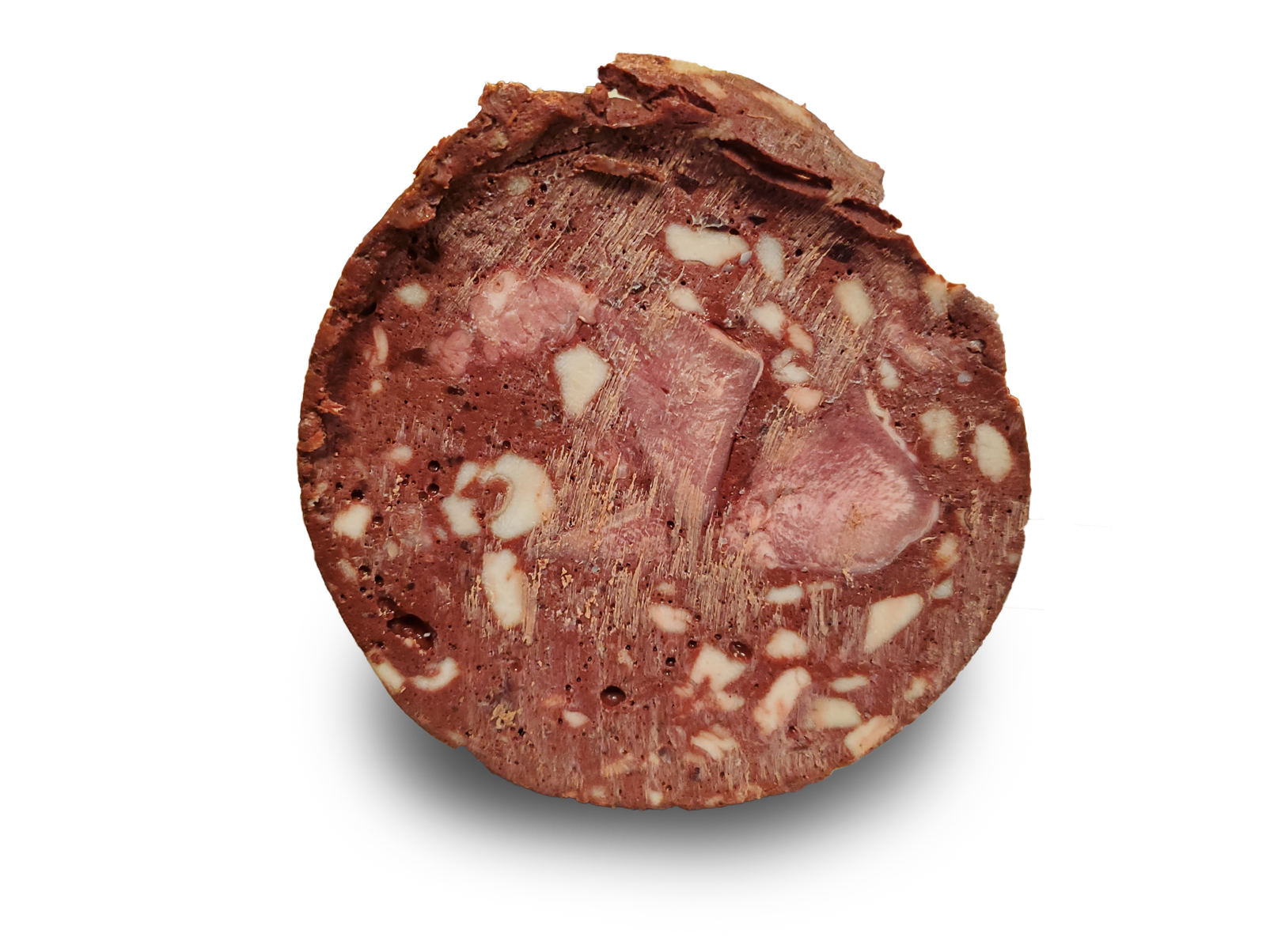 Pork tongue, pork, blood, water, evaporated milk, salt, spices, sugar, hydrolyzed soy and corn protein, sodium nitrite.