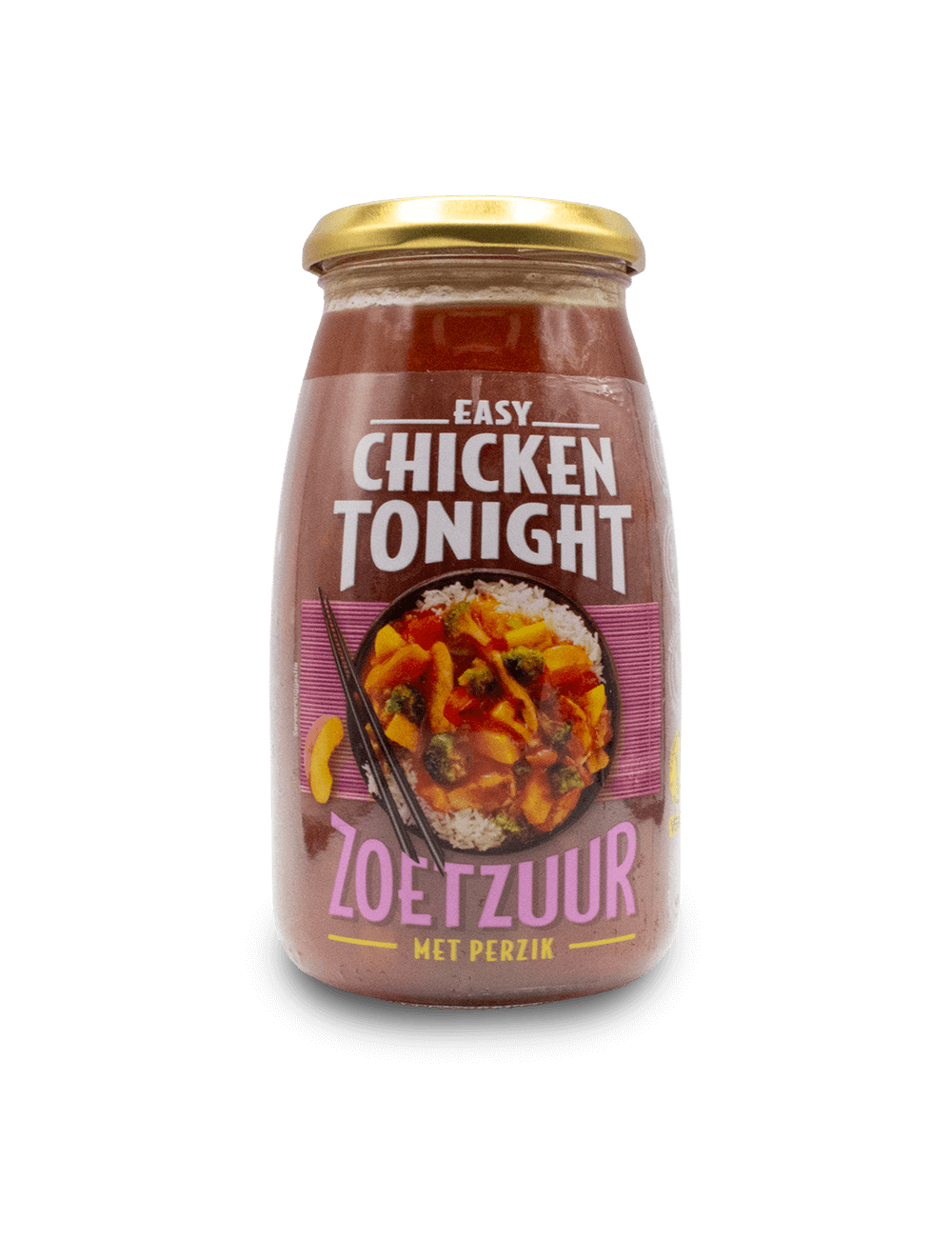 Ready to use sauce with peaches, red and green peppers.