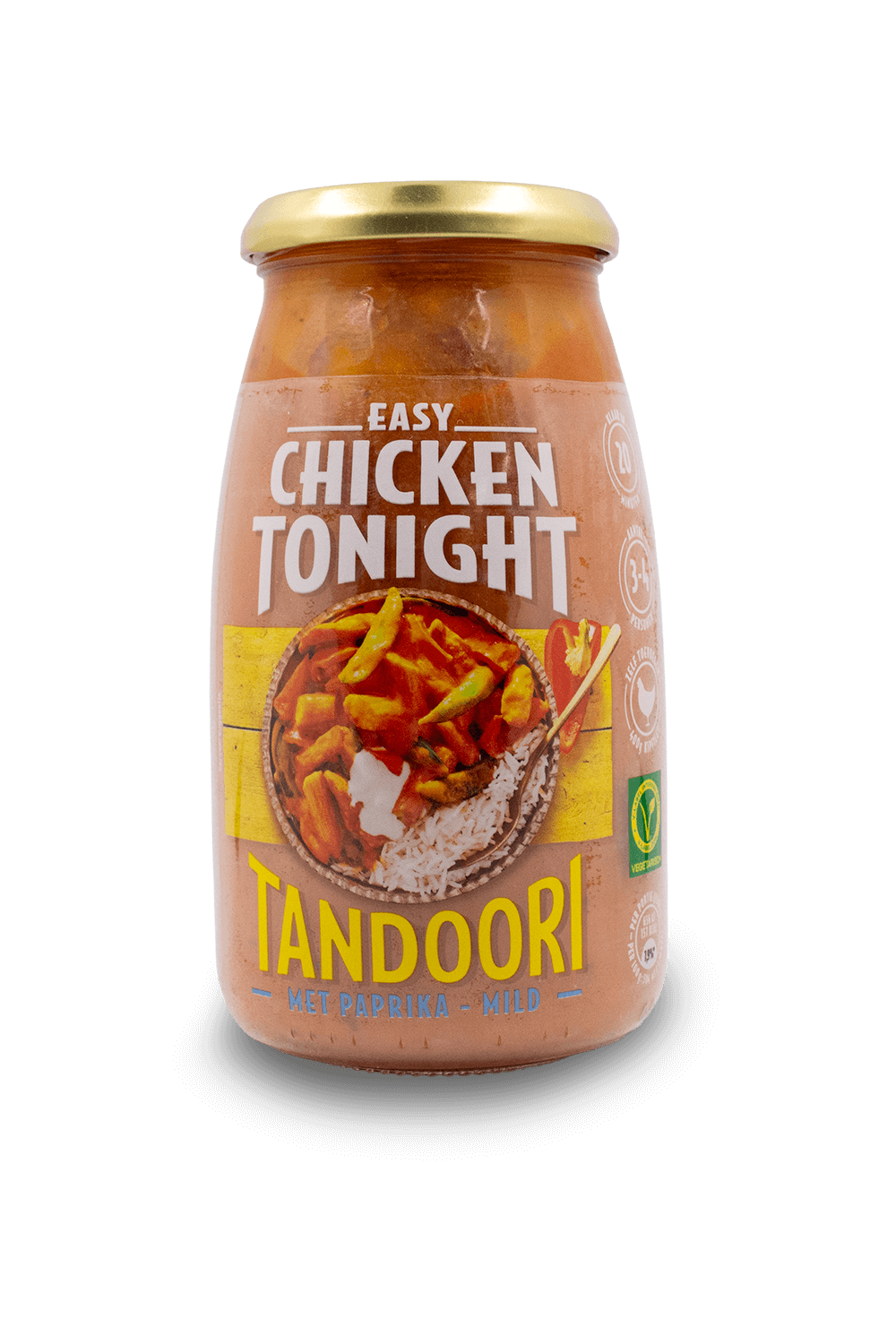 Ready to use mild sauce with paprika, salt, onion, garlic, cumin, coriander and turmeric for a tandoori flavour.