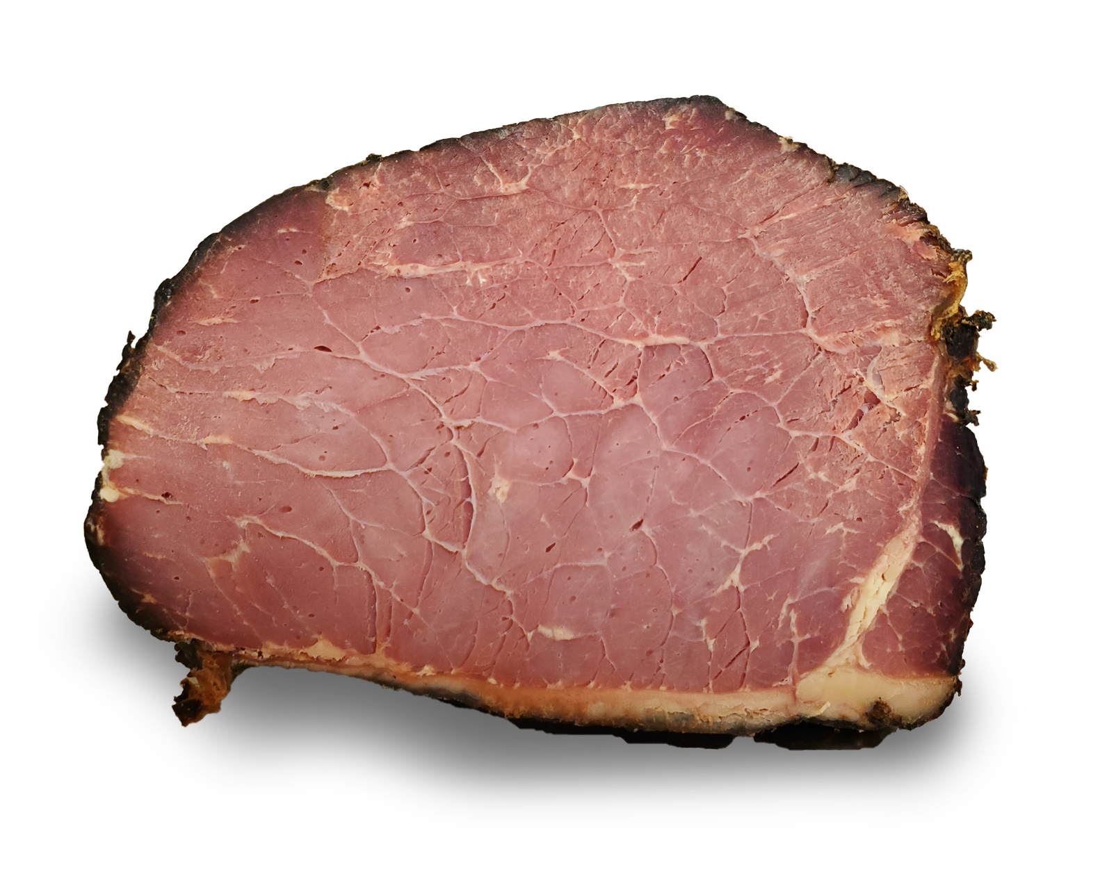 Beef, water, salt, sugars (dextrose, brown sugar), flavouring (soy protein isolate and corn starch as a carrier, spice extratives), sodium phosphate, sodium erythorbate, spices, caramel powder, gelatine, sodium nitrite, garlic oil, smoke flavour.