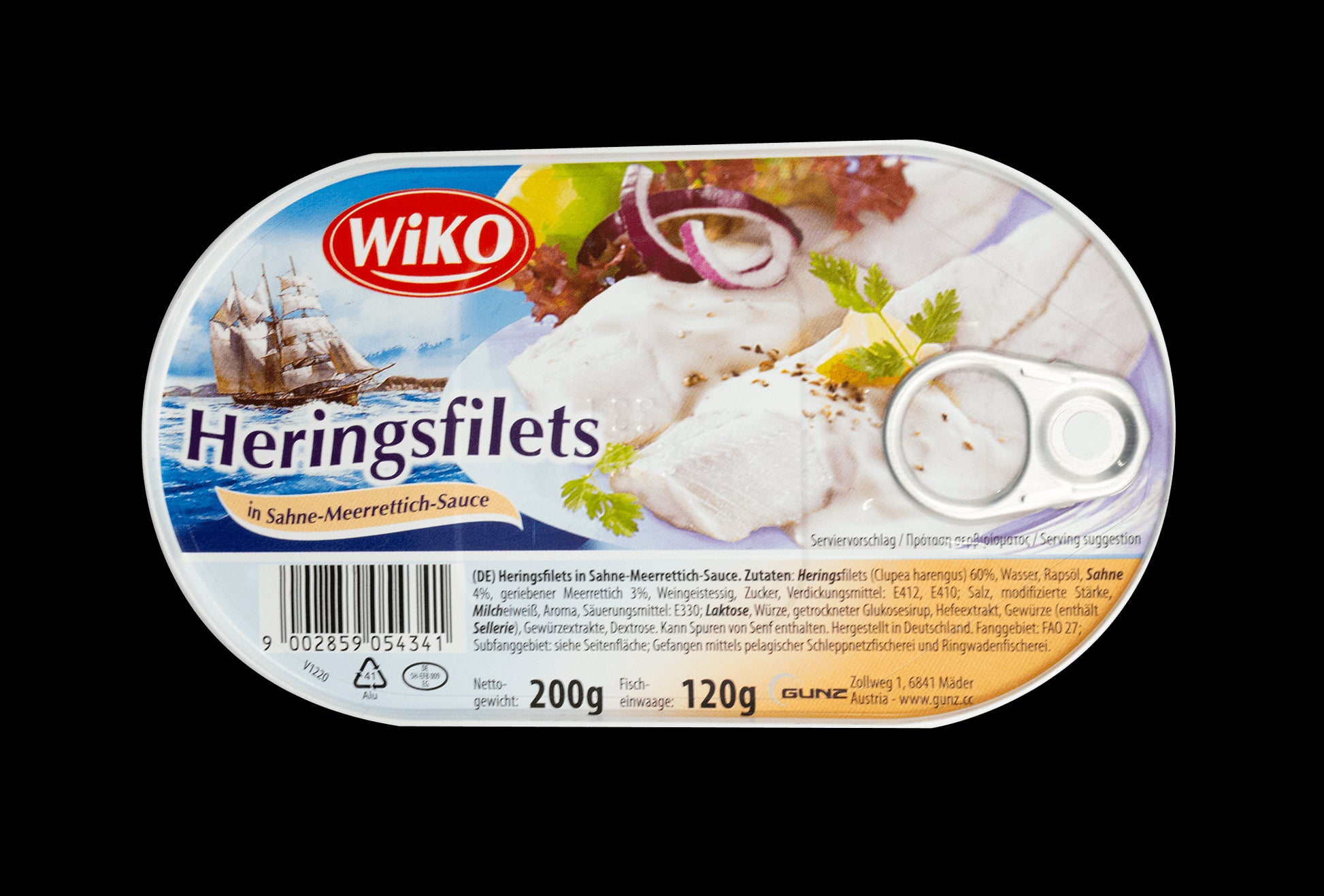 Herring fillets in creamy horseradish sauce.