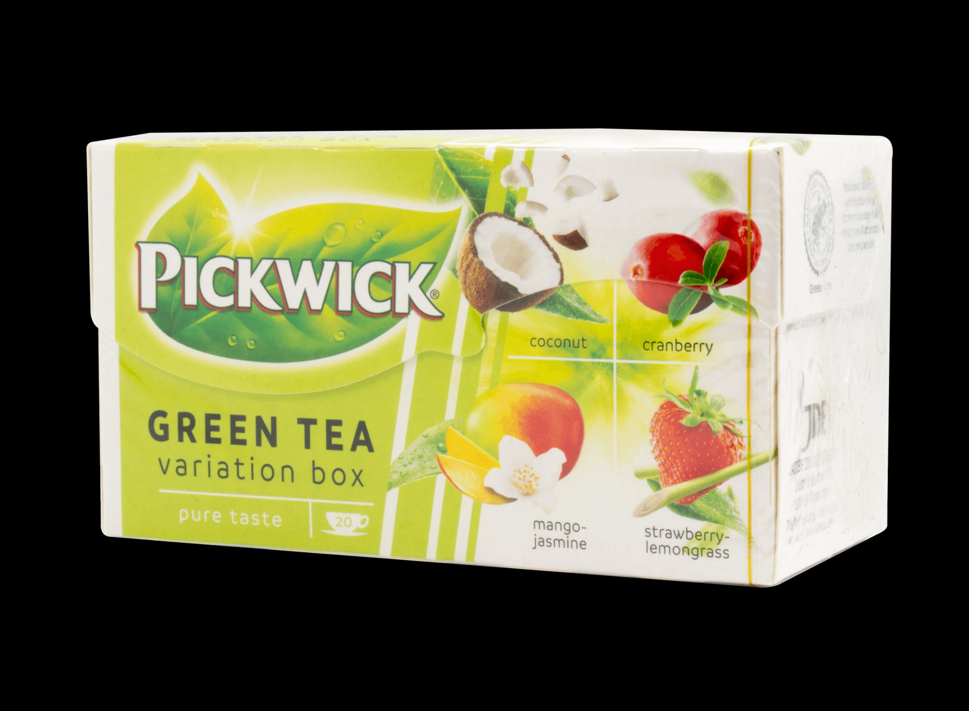 Variety box of 4 green tea flavours. Contains Coconut, Mango Jasmin, Cranberry, and Strawberry Lemongrass green teas.