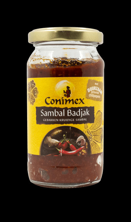 Sambal is a chili hot sauce, popular in oriental dishes. Sambal Badjak contains candle nuts and terasi.