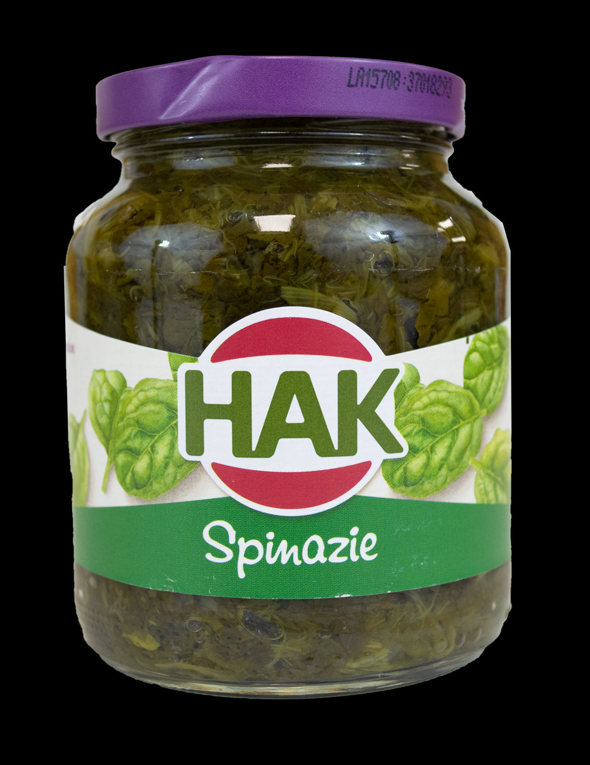Chopped spinach preserved in a jar.