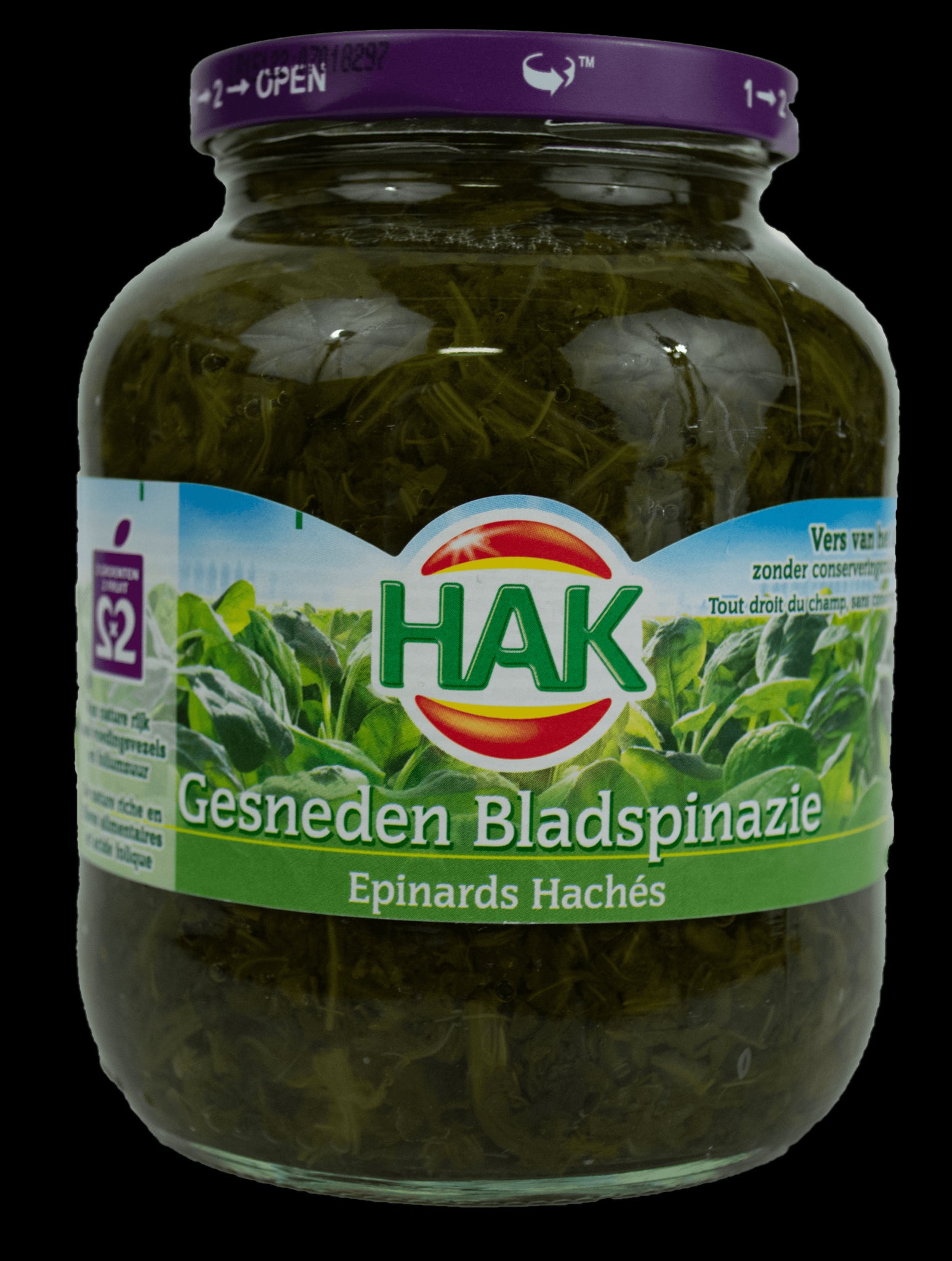 Chopped spinach preserved in a jar.