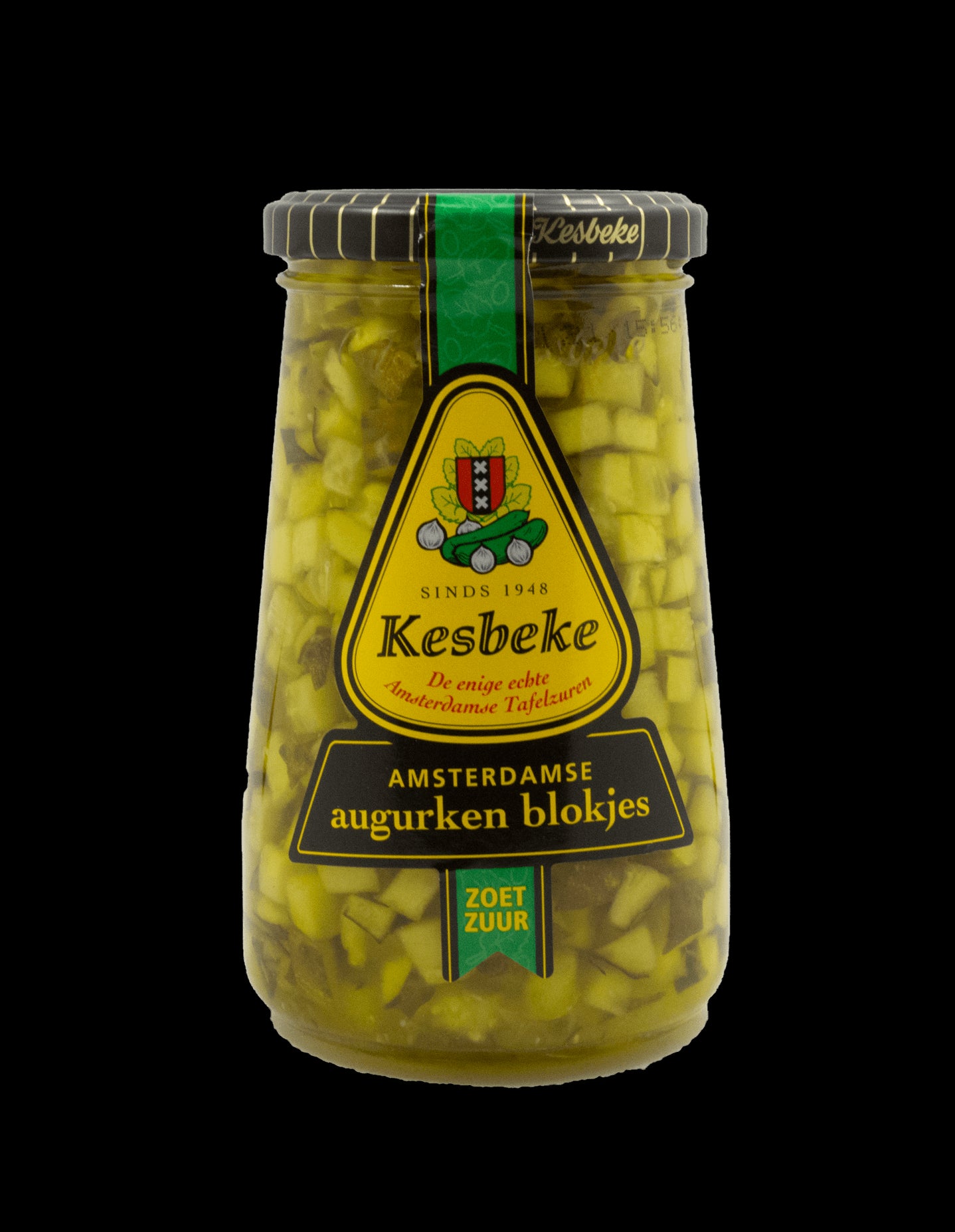Mini diced pieces of Amsterdam style sweet & sour pickles.