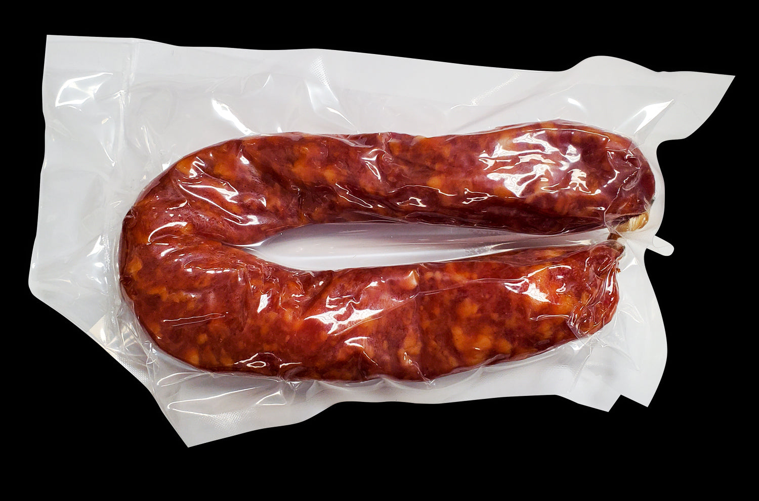 Traditional Dutch smoked sausage (metworst), dried and vacuum sealed on-site for freshness.