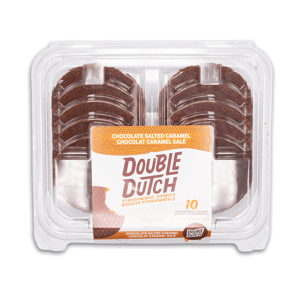 Double Dutch stroopwafels with a chocolate wafer and salted caramel filling.