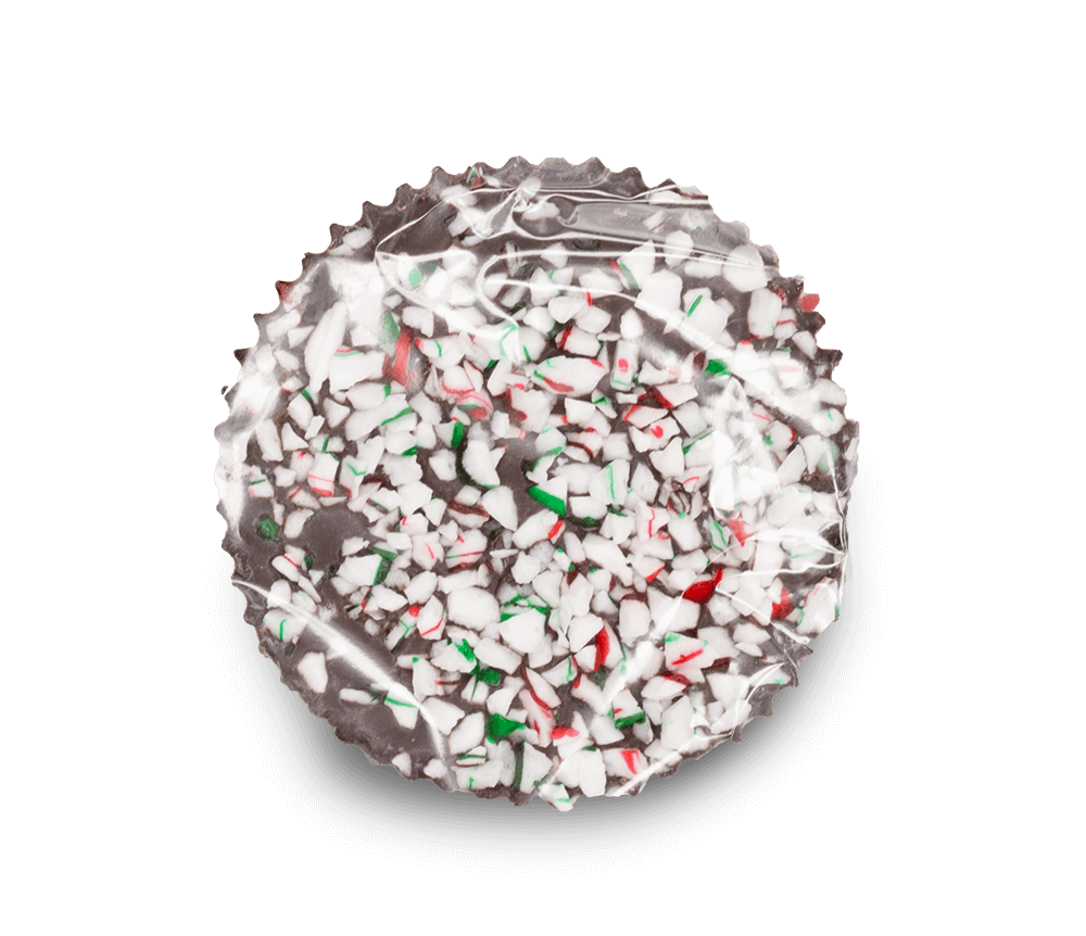 Milk chocolate cup with mint chocolate filling and peppermint topping.
